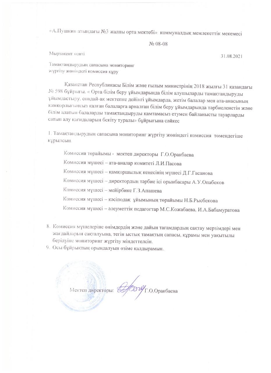 Тамақтандырудың сапасына мониторинг жүргізу жөнінде » Пушкин ЖОМ