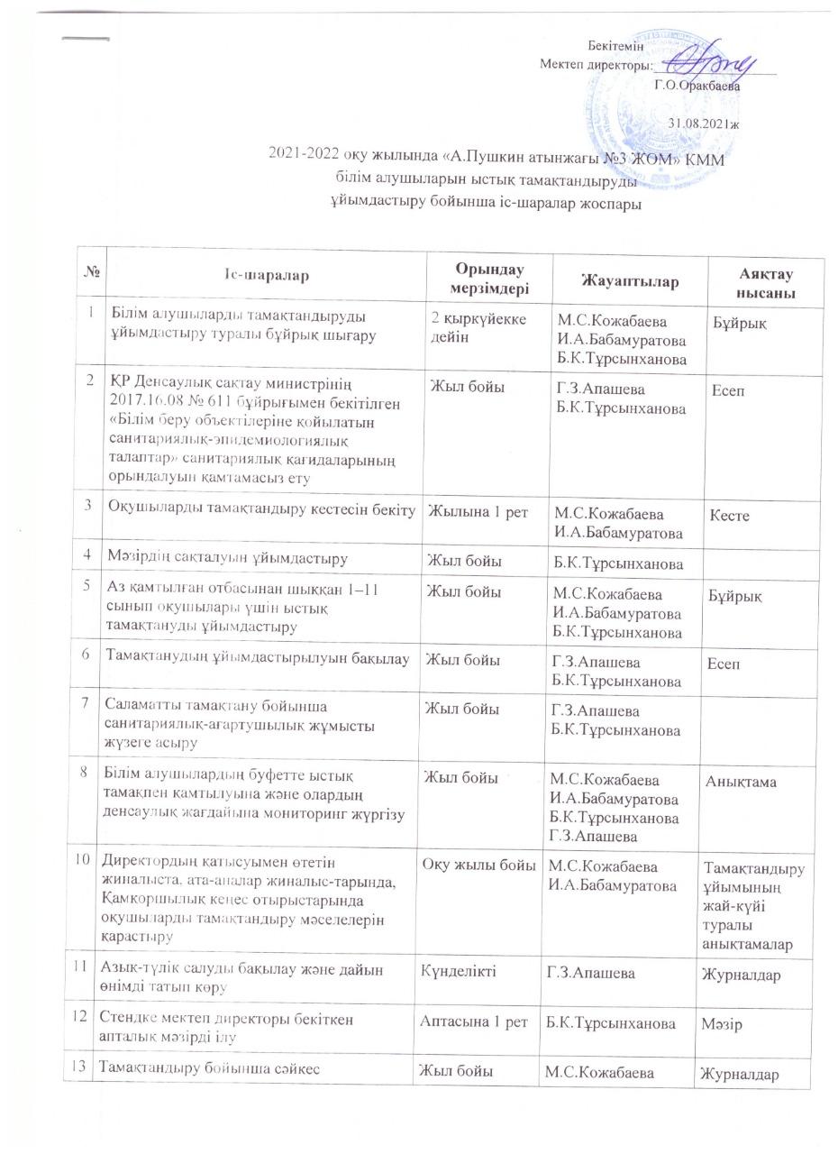Ыстық тамақтандыруды ұйымдастыру бойынша іс-шаралар » Пушкин ЖОМ